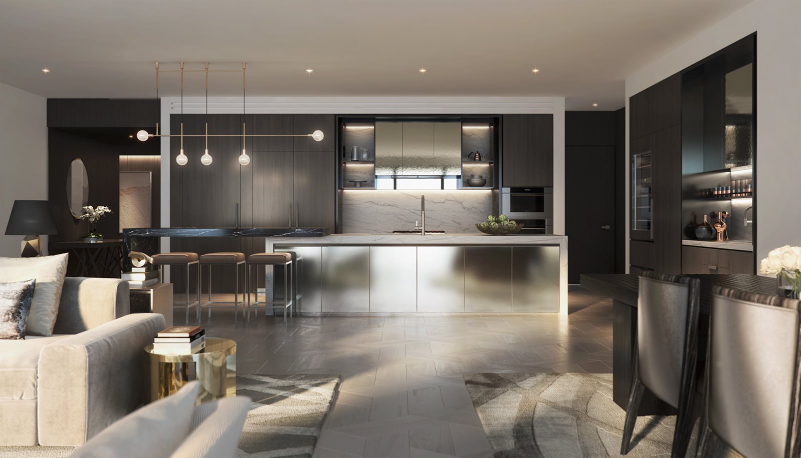The elegant, twisting form of Wilkinson Eyre’s architecture has left every level of One Barangaroo with a unique floorplate. Celebrated New York design firm Meyer Davis has crafted bespoke interior layouts and designs for each of the 82 residences.
